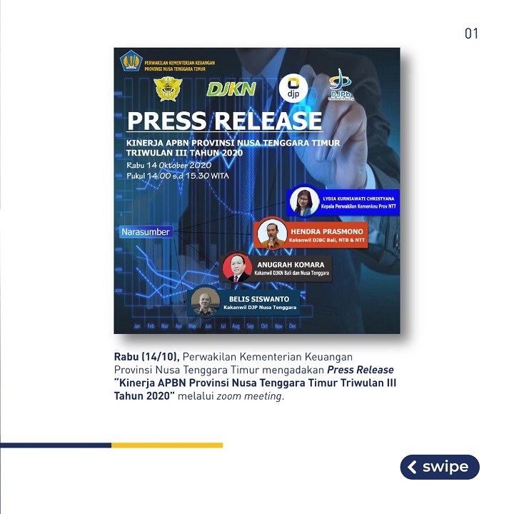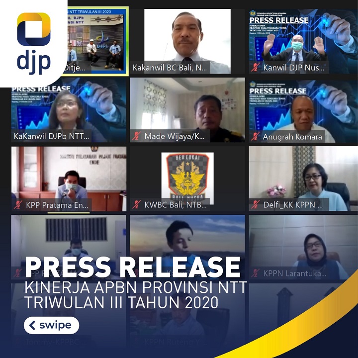 Kementerian Keuangan (Kemenkeu) di wilayah Nusa Tenggara Timur (NTT) mengundang awak media dalam Press Release Kinerja APBN Provinsi Nusa Tenggara Timur Triwulan III Tahun 2020 melalui media telekonferensi di Nusa Tenggara Timur (Rabu, 14/10).