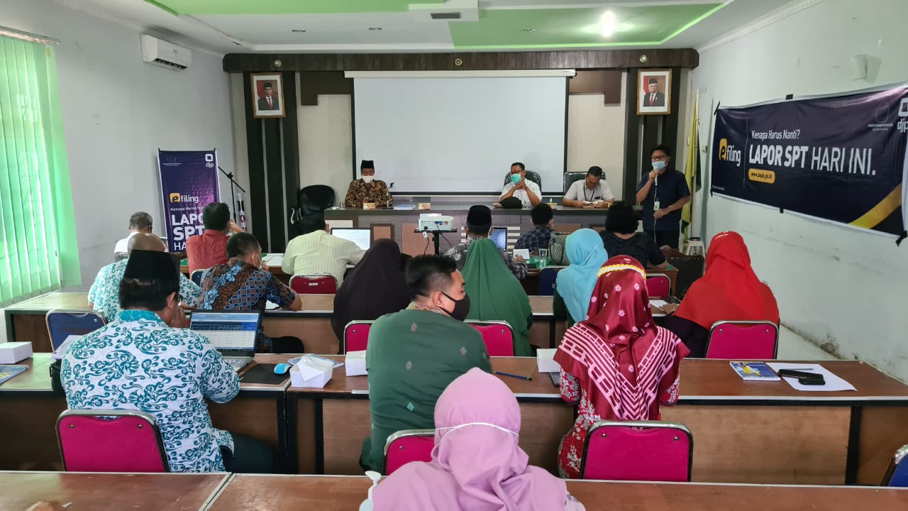 KP2KP Tanjung Balai bersama KPP Pratama Kisaran memberikan asistensi pengisian SPT Tahunan dengan menggunakan e-Filing kepada pegawai Kantor Kemenag Tanjung Balai. Kegiatan ini dilaksanakan di Aula Kantor Kemenag Tanjung Balai, Kota Tanjung Balai, Sumatera Utara (Kamis, 4/2).