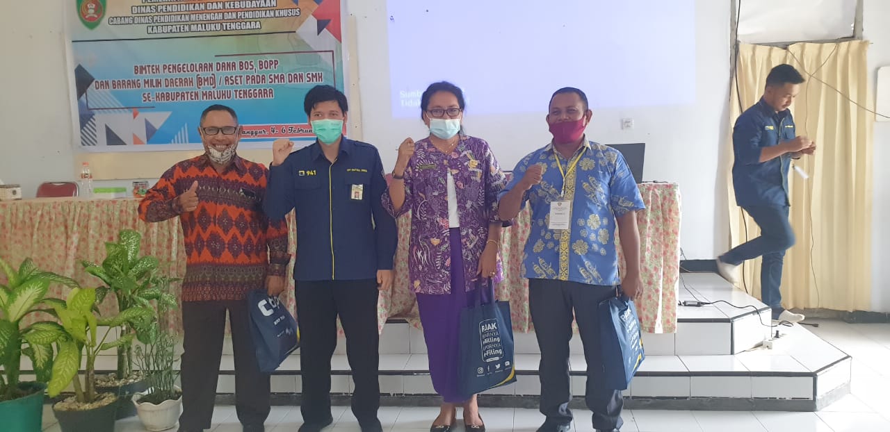 Kantor Cabang DInas Pendidikan Menengah dan Pendidikan Khusus Kabupaten Maluku Tenggara mengundang Kantor Pelayanan, Penyuluhan, dan Konsultasi Perpajakan (KP2KP) Tual menjadi pemateri aspek perpajakan atas pengelolaan dana Bantuan Operasional Sekolah (BOS) dan Biaya Operasional Penyelenggaraan Pendidikan (BOPP) (Kamis, 4/2). Kegiatan yang bertempat di Aula SMA Negeri 2 Maluku Tenggara ini diikuti oleh perwakilan dari 26 SMA/SMK se-Kabupaten Maluku Tenggara.