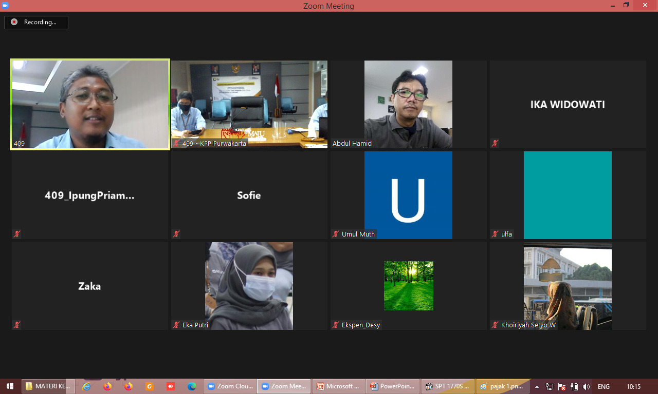 Kantor Pelayanan Pajak (KPP) Pratama Purwakarta menggelar kegiatan Kelas Pajak Online dengan tema kegiatan asistensi pelaporan SPT Tahunan Wajib Pajak Orang Pribadi Karyawan secara elektronik yang dipandu dari ruang rapat KPP Pratama Purwakarta (Kamis, 11/2).