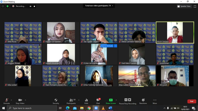 Kegiatan yang diikuti 90 peserta ini dilakukan dengan media Zoom Cloud Meeting dengan narasumber dari KPP Pratama Serang Barat yang diwakili oleh Kepala Seksi Ekstensifikasi dan Penyuluhan Elias Lukas Malona.
