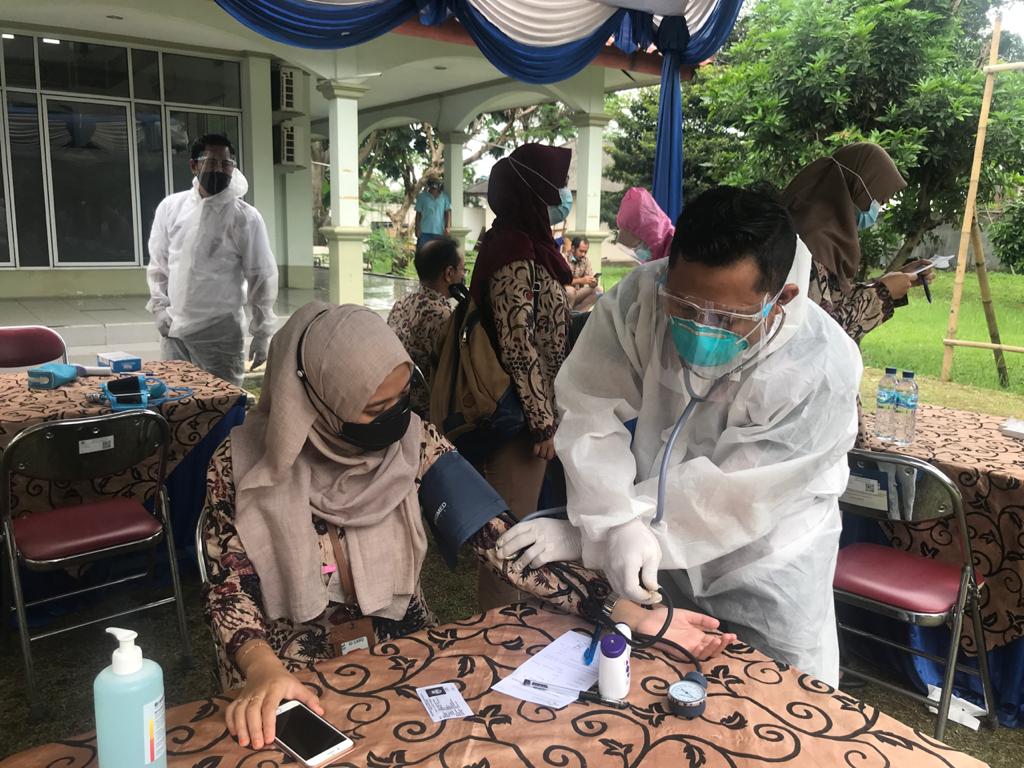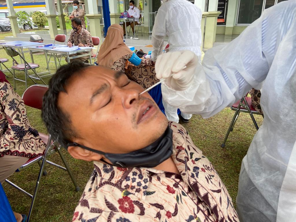 Petugas pengambil sampel dengan menggunakan APD lengkap dan para pegawai mematuhi protokol kesehatan yang berlaku. Hasil tes usap antigen langsung diperoleh pada hari yang sama dengan hasil seluruh pegawai dan PPNPN negatif Covid-19.
