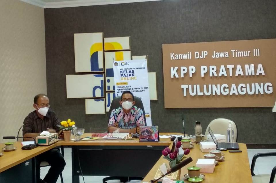 Kantor Pelayanan Pajak (KPP) Pratama Tulungagung mengadakan Sosialisasi Undang-Undang Cipta Kerja Klaster Perpajakan kepada wajib pajak strategis melalui media telekonferensi Zoom Meeting di Tulungagung (Jumat, 19/2).