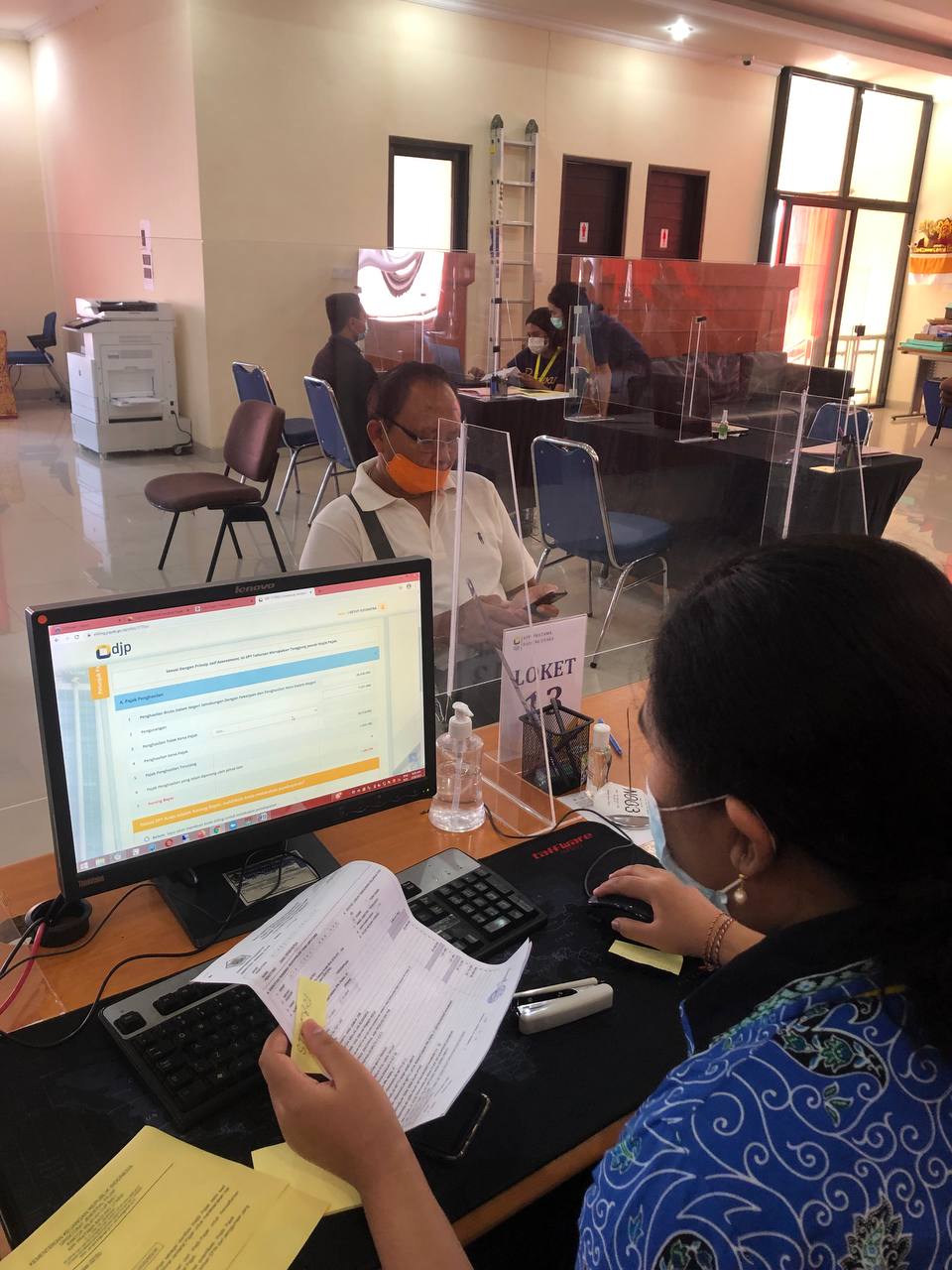 Relawan Pajak Universitas Dhyana Pura (Undhira) Badung turut serta membantu wajib pajak lapor SPT secara e-Filing bagi Karyawan/Pegawai dengan jenis SPT 1770 S dan 1770 SS di Kantor Pelayanan Pajak (KPP) Pratama Badung (Jumat, 26/2).