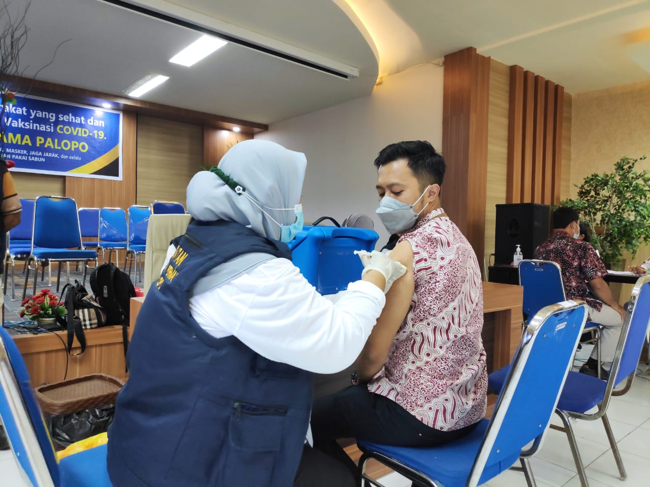 Kantor Pelayanan Pajak (KPP) Pratama Palopo kembali melaksanakan vaksinasi CoronaVac di Aula Sawerigading KPP Pratama Palopo, Kota Palopo (Jumat, 19/3). Vaksinasi ini merupakan pemberian vaksin dosis kedua setelah pemberian dosis pertama yang dilaksanakan empat belas hari sebelumnya.