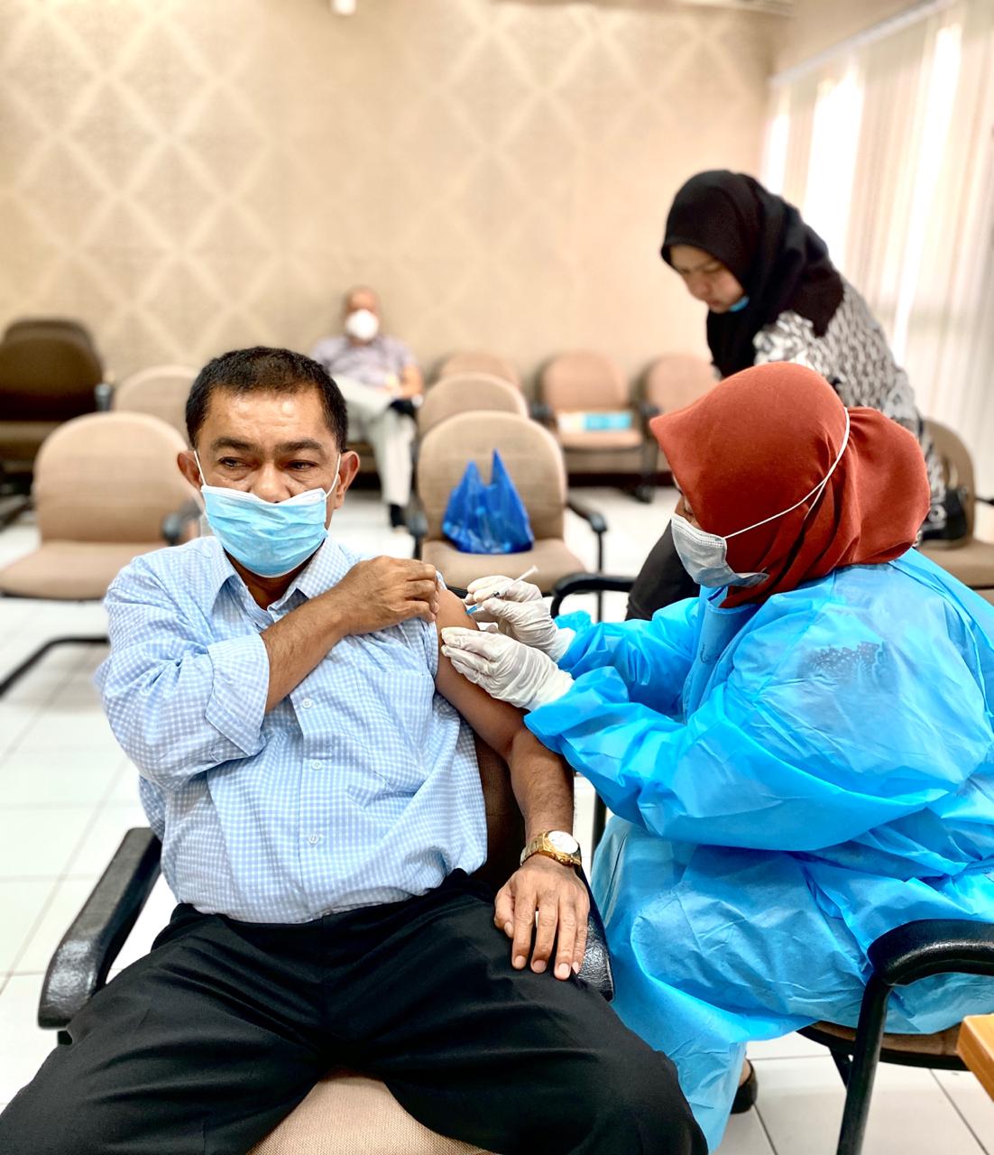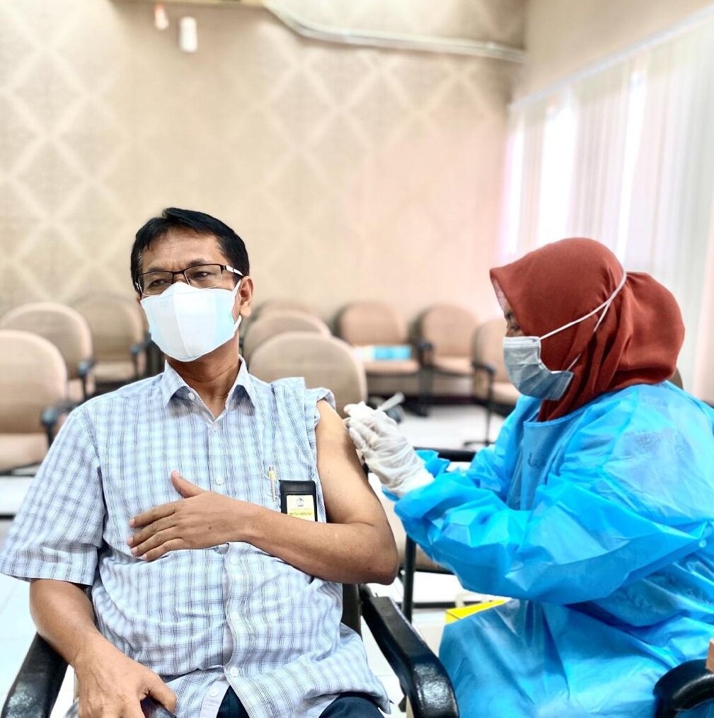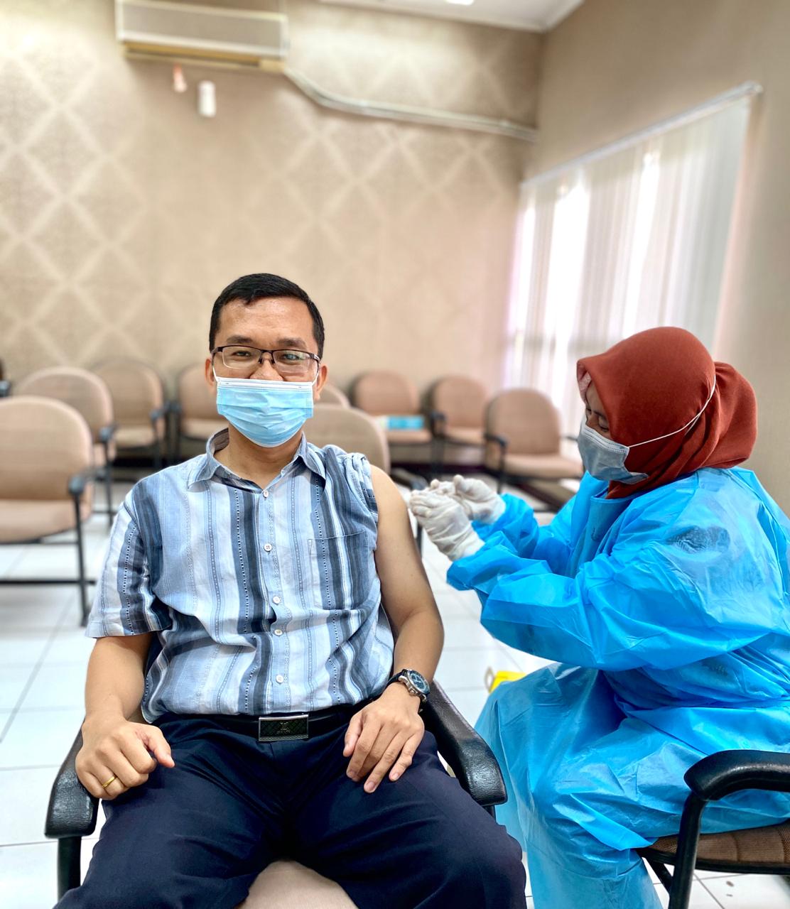 Kantor Pelayanan Pajak (KPP) Pratama Tebing Tinggi kembali mengadakan vaksinasi Covid-19 kepada para pegawai di Aula KPP Pratama Tebing Tinggi, Kota Tebing Tinggi (Kamis, 8/4). Kegiatan vaksinasi ini diadakan untuk para pegawai KPP Pratama Tebing Tinggi yang telah divaksin tahap pertama yang selanjutnya menerima vaksinasi Covid-19 tahap kedua. Kegiatan ini dilakukan secara bertahap mengingat ketersediaan vaksin yang terbatas perharinya. Vaksinasi ini diadakan dengan harapan dapat melindungi para pegawai dalam melaksanakan tugas dan memberi kenyamanan para wajib pajak yang menerima pelayanan, serta memutus rantai penyebaran Covid-19.