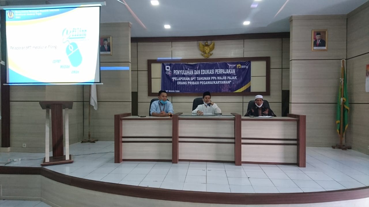 Kantor Pelayanan, Penyuluhan, dan Konsultasi Perpajakan (KP2KP) Muara Tebo berkoordinasi dengan Kementerian Agama Kabupaten Tebo mengadakan Dialog dan Edukasi Perpajakan di Aula Kantor Kementerian Agama Tebo (Rabu, 17/3).