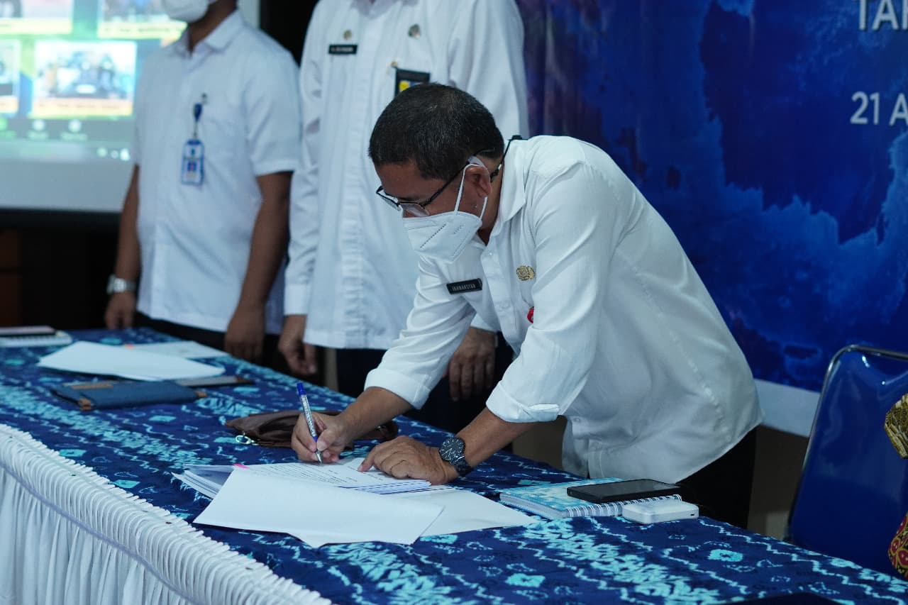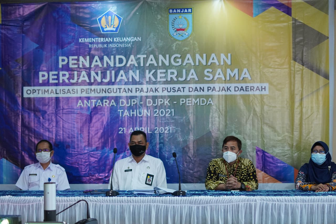 Pemerintah Daerah (Pemda) Kabupaten Banjar menandatangani Perjanjian Kerja Sama (PKS) antara Pemerintah Daerah Kabupaten Banjar, Direktorat Jenderal Pajak (DJP), dan Direktorat Jenderal Perimbangan Keuangan (DJPK), di Kantor Badan Pendapatan Daerah (BAPENDA) Kabupaten Banjar, Banjar, Kalimantan Selatan (Rabu, 21/4).