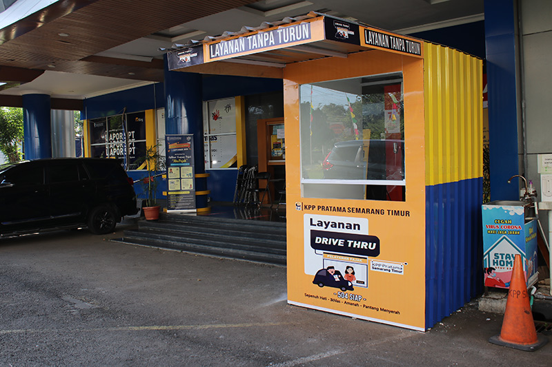 Kantor Pelayanan Pajak (KPP) Pratama Semarang Timur menghadirkan Layanan Drive Thru sebagai salah satu inovasi pelayanan dalam situasi pandemi Covid-19 di Semarang (Selasa, 13/7). Inovasi ini dibuat sebagai wujud komitmen KPP Pratama Semarang Timur dalam memberikan pelayanan optimal.