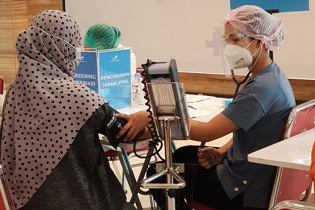 Sebelum menerima suntikan vaksin Covid-19, para peserta wajib melakukan serangkaian tahapan mulai dari registrasi data, pengukuran tanda vital hingga cek kesehatan. Peserta yang dapat menerima vaksin adalah peserta yang berada dalam kondisi sehat dan jika pernah terjangkit covid-19 harus sudah melewati masa tiga bulan setelah dinyatakan negatif.