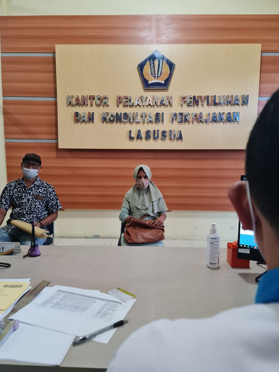 Kantor Pelayanan, Penyuluhan, dan Konsultasi Perpajakan (KP2KP) Lasusua tetap membuka layanan melalui tatap muka pada situasi pandemi Covid-19 dengan menerapkan protokol kesehatan Covid-19 yang ketat di Tempat Pelayanan Terpadu (TPT) KP2KP Lasusua, Kabupaten Kolaka Utara (Kamis, 29/7).