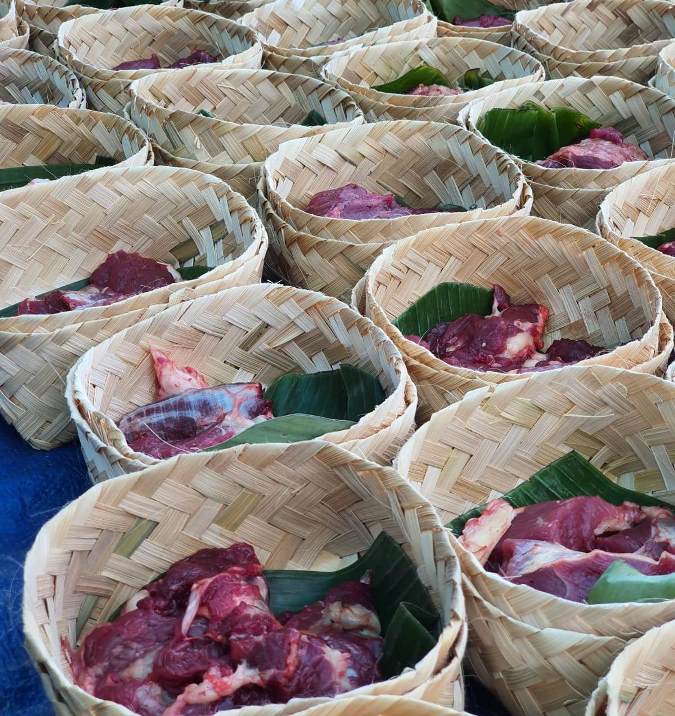 Jumlah hewan kurban yang disembelih adalah empat ekor sapi dan tiga ekor kambing. Dari sejumlah hewan kurban tersebut menghasilkan kurang lebih 980 paket daging hewan kurban. Untuk mengurangi penggunaan plastik, daging hewan kurban ditempatkan pada wadah besek yang terbuat dari bambu yang dianyam.