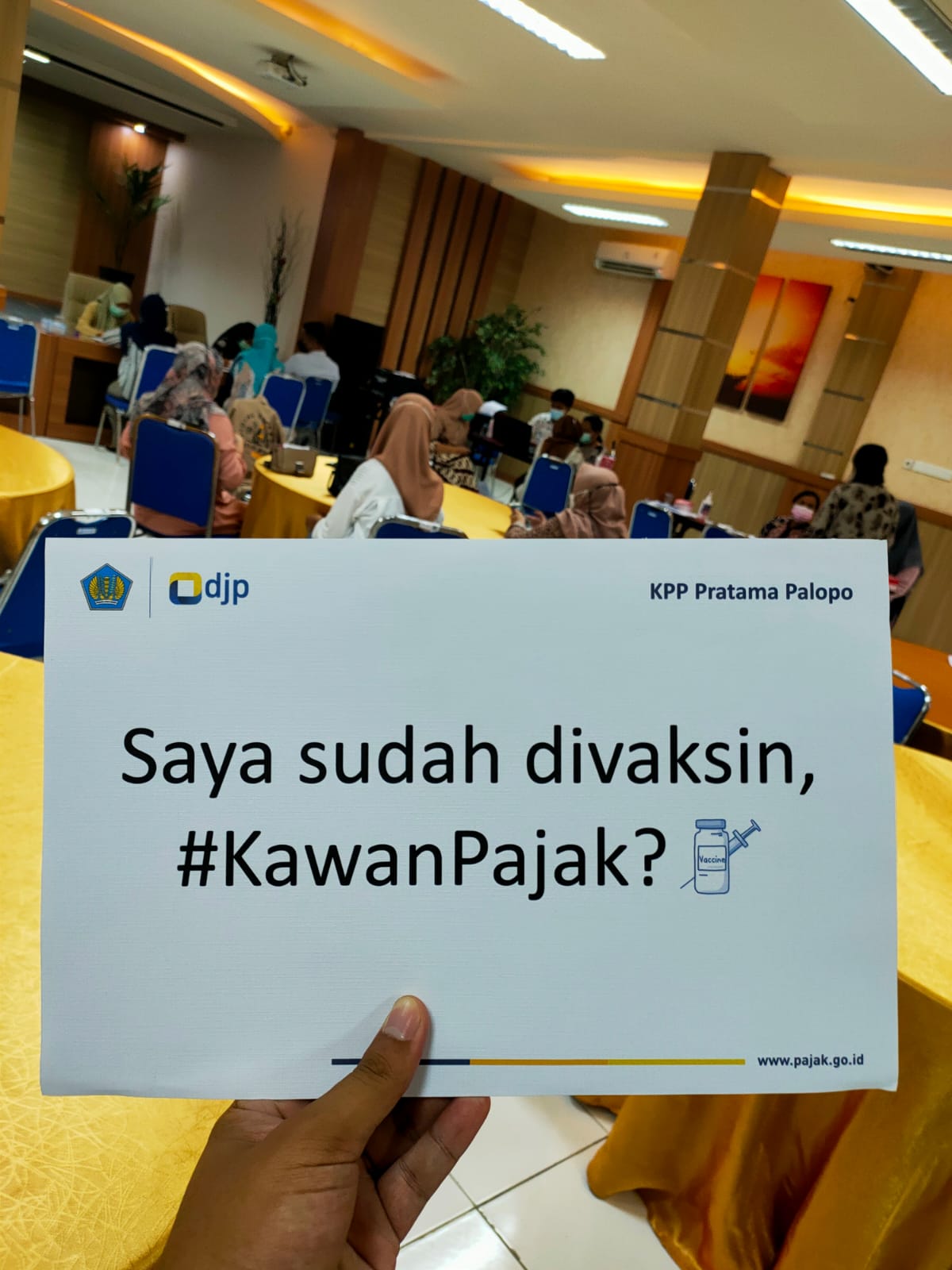 Kantor Pelayanan Pajak (KPP) Pratama Palopo menyelenggarakan vaksinasi massal di ruang aula KPP Pratama Palopo, Kota Palopo (Kamis, 30/9). Kegiatan ini dilaksanakan bersama dengan Puskesmas Kecamatan Wara dan Kepolisian Resor Palopo.