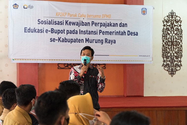 Kantor Pelayanan, Penyuluhan, dan Konsultasi Perpajakan (KP2KP) Puruk Cahu bekerja sama dengan Dinas Pemberdayaan Masyarakat dan Desa (DPMD) Murung Raya mengadakan sosialisasi perpajakan kepada para Bendahara Desa se-Kabupaten Murung Raya (Selasa, 30/11).