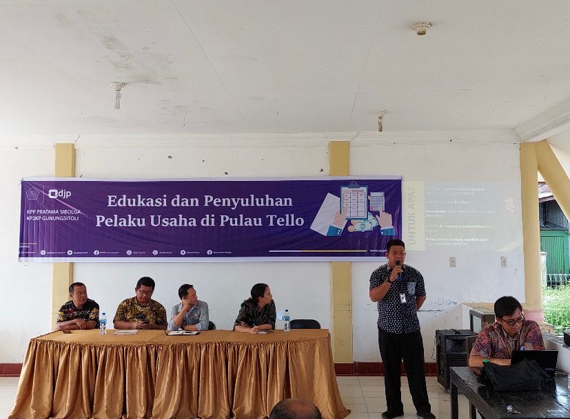 Kantor Pelayanan Pajak (KPP) Pratama Sibolga bersama dengan Kantor Pelayanan Penyuluhan dan Konsultasi Perpajakan (KP2KP) Gunung Sitoli mengadakan Edukasi dan Penyuluhan Para Pelaku Usaha di Kecamatan Pulau-Pulau Batu, Kabupaten Nias Selatan, Sumatera Utara (Kamis, 25/11).