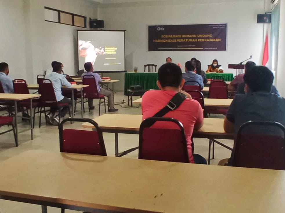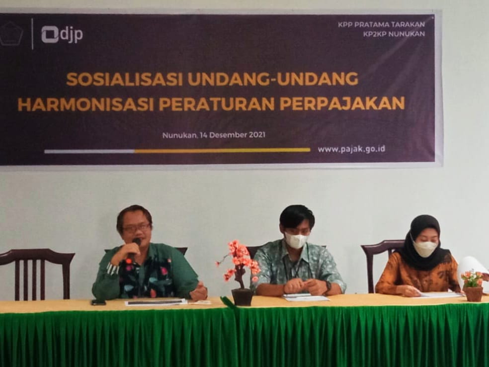 Kantor Pelayanan Penyuluhan dan Konsultasi Perpajakan (KP2KP) Nunukan mengadakan kegiatan sosialisasi Undang-undang (UU) Harmonisasi Peraturan Perpajakan (HPP) di Aula Hotel Fortune Nunukan, Kab. Nunukan (Selasa, 14/12). Terdapat 11 wajib pajak strategis Pulau Nunukan yang diundang dalam kegiatan kali ini, termasuk pengusaha konstruksi, tambang, dan buah kelapa sawit.