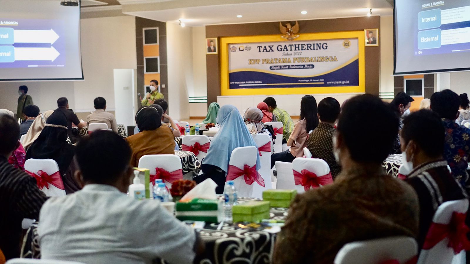 Kantor Pelayanan Pajak (KPP) Pratama Purbalingga menggelar acara Tax Gathering bersama 200 wajib pajak yang bertempat di Aula KPP Pratama Purbalingga (Selasa, 25/1). Acara ini digelar demi menjalin sinergi yang baik dan harmonis antara wajib pajak dengan KPP Pratama Purbalingga, serta pemberian penghargaan kepada wajib pajak dengan kontribusi terbaik bagi penerimaan pajak di tahun 2021.