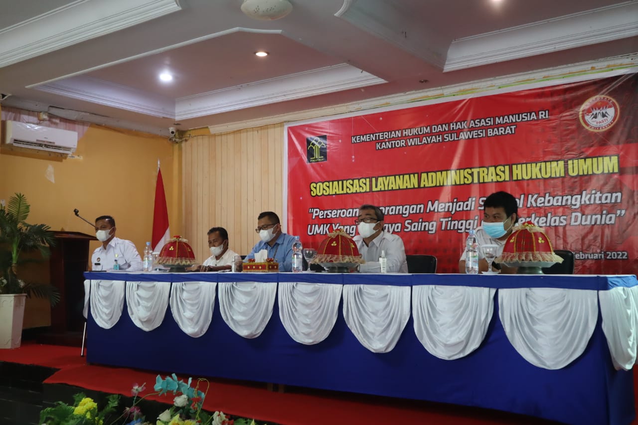 Kantor Pelayanan Pajak (KPP) Pratama Mamuju menjadi narasumber dalam acara Sosialisasi Layanan Administrasi Hukum Umum bertema “Perseroan Perorangan Menjadi Simbol Kebangkitan UMK yang Berdaya Saing Tinggi dan Berkelas Dunia”. Acara tersebut diselenggarakan oleh Kementerian Hukum dan HAM RI Kantor Wilayah Sulawesi Barat di Hotel Berkah, Mamuju (Rabu, 23/3).