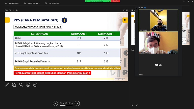 Kantor Pelayanan, Penyuluhan, dan Konsultasi Perpajakan (KP2KP) Tanah Grogot kembali mengadakan Kelas Pajak Program Pengungkapan Sukarela (PPS) secara daring melalui aplikasi Zoom Cloud Meeting di Gedung KP2KP Tanah Grogot, Kabupaten Paser, Kalimantan Timur (Jumat, 11/2).