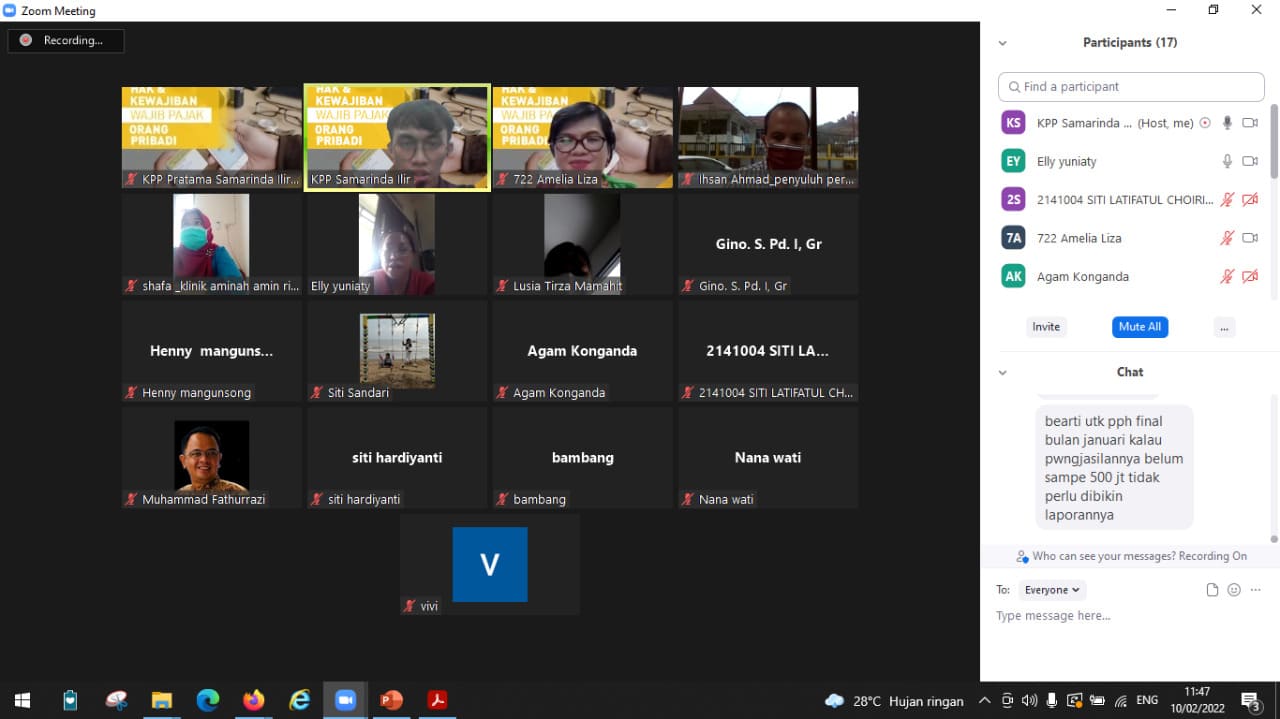 Kantor Pelayanan Pajak (KPP) Pratama Samarinda Ilir kembali membuka Kelas Pajak SPT Tahunan Pajak Penghasilan (PPh) Orang Pribadi secara daring melalui aplikasi Zoom Cloud Meetings di Samarinda (Kamis, 10/02).