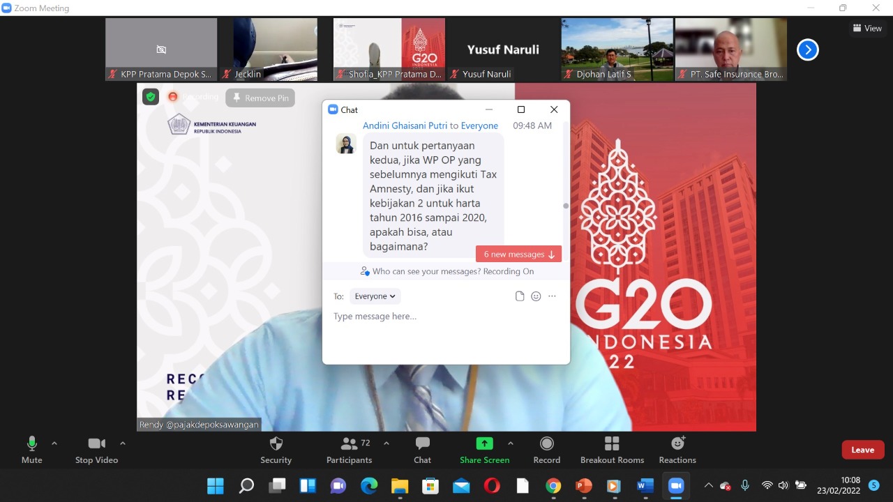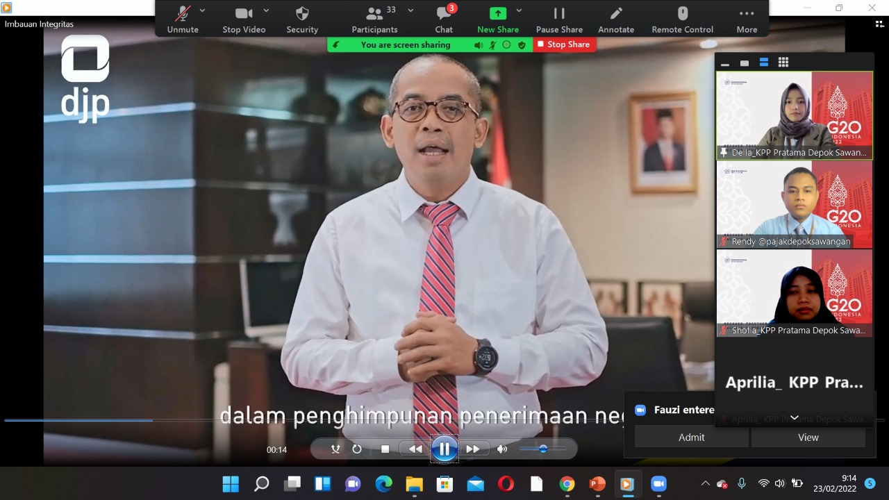 Kantor Pelayanan Pajak (KPP) Pratama Depok Sawangan kembali menggelar Kelas Pajak Program Pengungkapan Sukarela (PPS). Acara yang dipandu langsung dari Depok, Jawa Barat ini digelar secara virtual melalui Aplikasi Zoom Meeting (Rabu, 23/2).