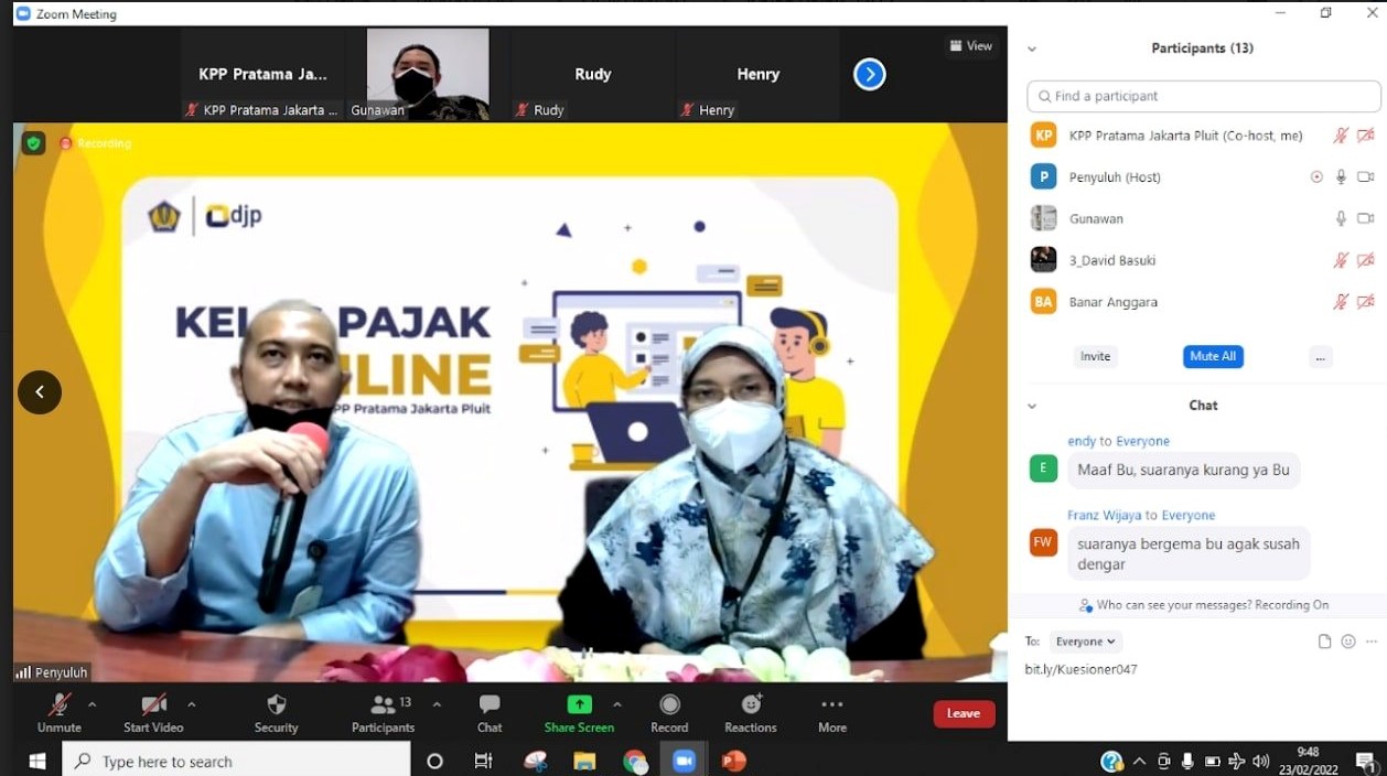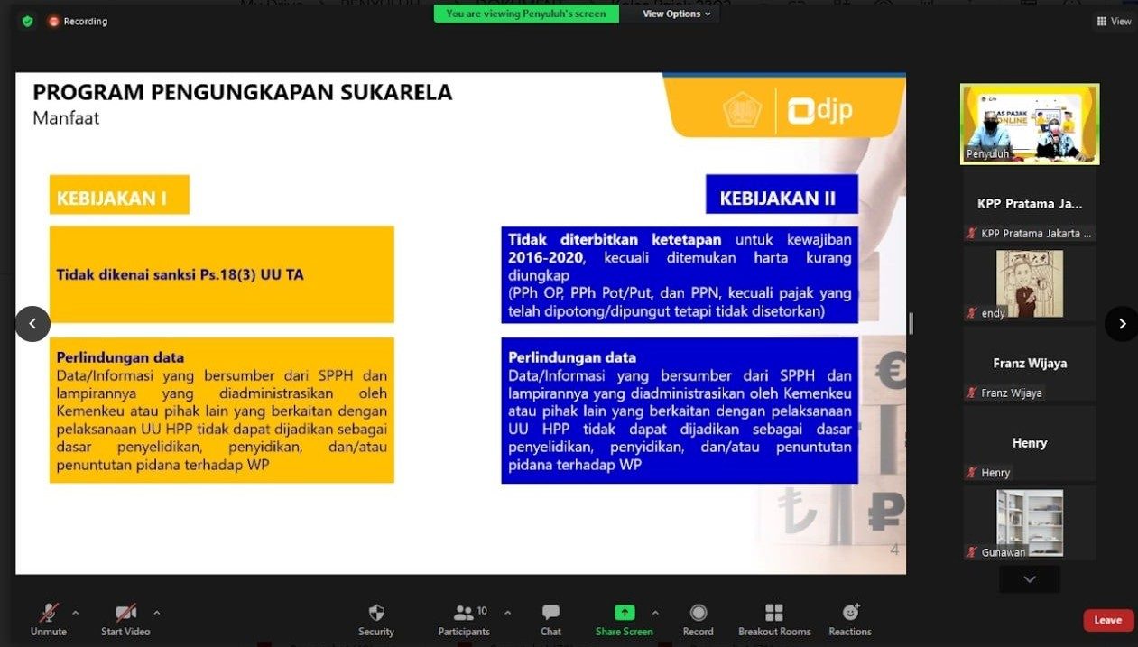Kantor Pelayanan Pajak (KPP) Pratama Jakarta Pluit kembali mengadakan kelas pajak untuk menyukseskan Program Pengungkapan Sukarela (PPS), di ruang rapat KPP Pratama Jakarta Pluit (Rabu, 23/02).