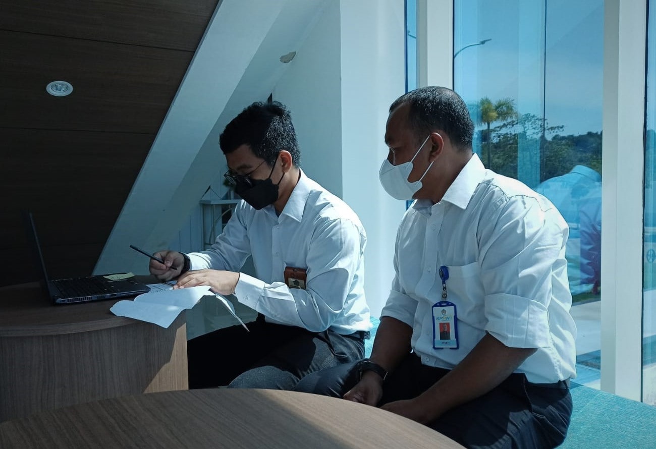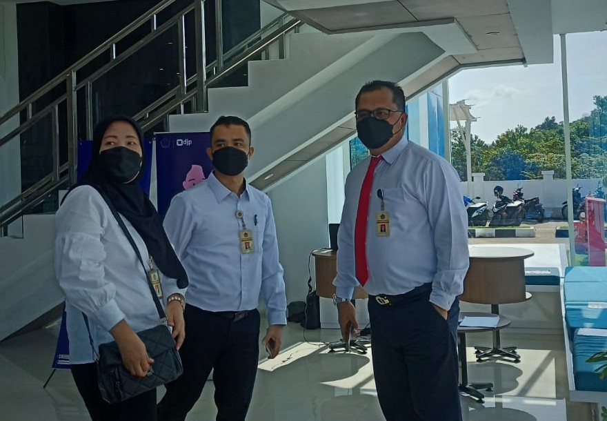 Kepala Kantor Pelayanan Pajak (KPP) Pratama Tanjung Pinang Rudianto Gurning berkunjung ke Kantor Pelayanan Perbendaharaan Negara (KPPN) Tipe A1 Provinsi Tanjung Pinang Pojok Pajak di KPPN Tanjung Pinang, Kepulauan Riau (Senin, 21/2). Pojok pajak akan diselenggarakan mulai 21 hingga 25 Februari 2022.