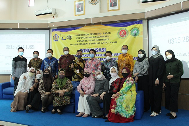 Kantor Pelayanan, Penyuluhan, dan Konsultasi Perpajakan (KP2KP) Martapura dan Kantor Pelayanan Pajak (KPP) Pratama Banjarbaru bekerja sama dengan Ikatan Notaris Indonesia dan Ikatan Pejabat Pembuat Akta Tanah (PPAT) Kabupaten Banjar menggelar acara sosialisasi Undang-Undang Harmonisasi Peraturan Perpajakan (UU HPP), Program Pengungkapan Sukarela (PPS), serta Pelaporan Surat Pemberitahuan (SPT) Tahunan (Selasa, 15/3).