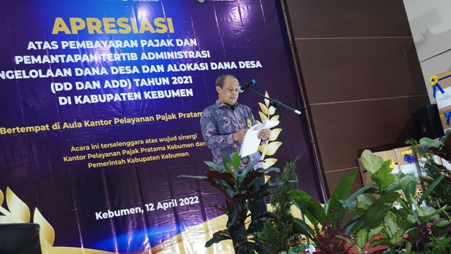 Kantor Wilayah Direktorat Jenderal Pajak Jawa Tengah II bersama Kantor Pelayanan Pajak (KPP) Pratama Kebumen menggelar acara Pemberian Apresiasi atas Pembayaran Pajak dari Pengelolaan Dana Desa dan Alokasi Dana Desa (DD dan ADD) di Kabupaten Kebumen (Selasa, 12/4).