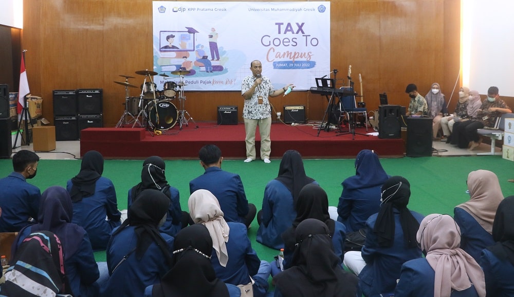 Berkolaborasi dengan Universitas Muhammadiyah Gresik, Kantor Pelayanan Pajak (KPP) Pratama Gresik menyelenggarakan kegiatan Tax Goes To Campus (TGTC) di Aula KPP Pratama Gresik (Jumat, 29/7).
