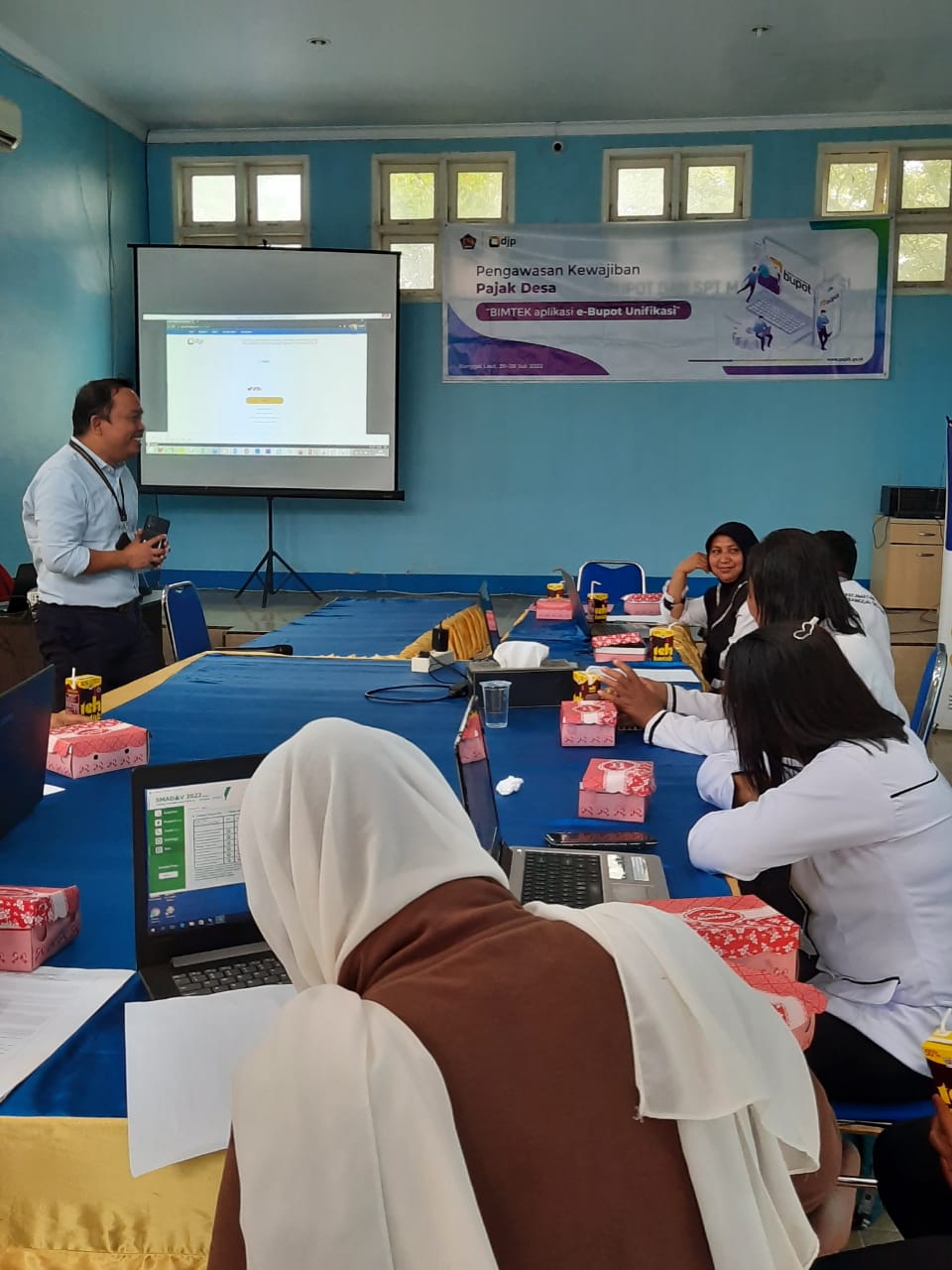 Kantor Pelayanan, Penyuluhan dan Konsultasi Perpajakan (KP2KP) Banggai bekerja sama dengan Dinas Pemberdayaan Masyarakat Desa, Pemberdayaan Perempuan dan Perlindungan Anak (DPMD-P3A) Kabupaten Banggai Laut menyelenggarakan sosialisasi perpajakan (Selasa, 26/7). Kegiatan ini dilaksanakan selama tiga hari dari tanggal 26 s.d. 28 Juli 2022 karena terbatasnya tempat kegiatan penyuluhan.