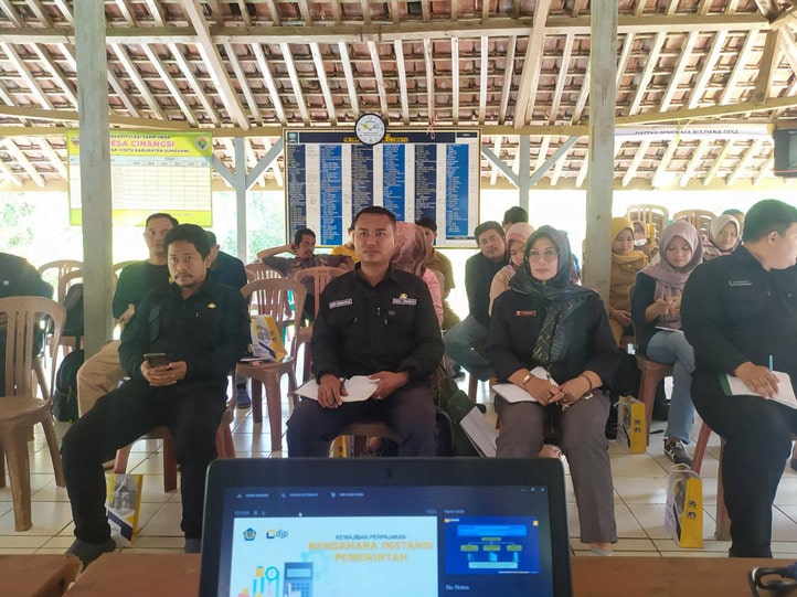 Tim Penyuluh Pajak menyampaikan materi mengenai aspek perpajakan bendahara desa kepada 30 bendahara desa di lingkungan Kecamatan Cisitu yang terdiri dari 10 desa.