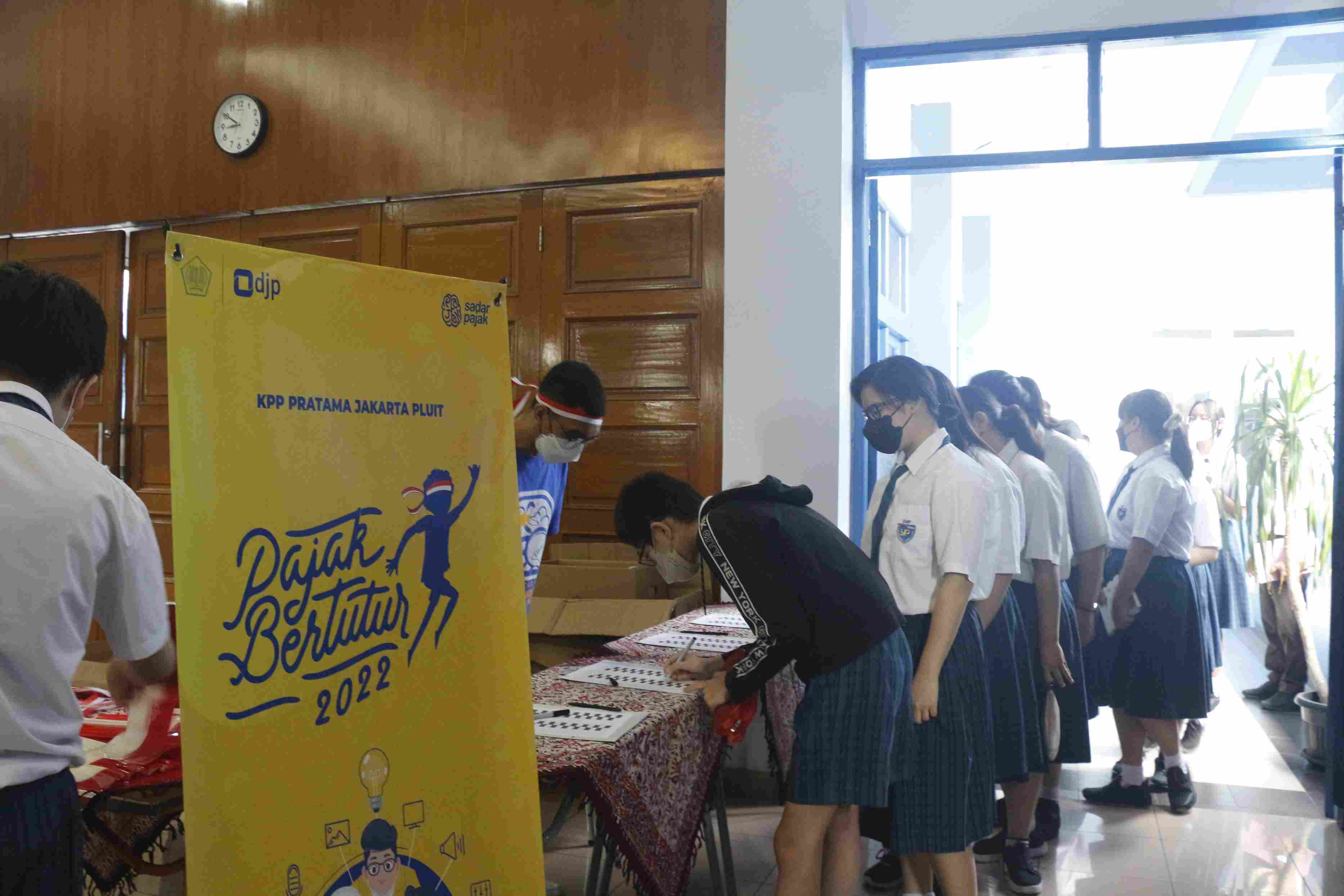 Kegiatan Pajak Bertutur 2022 kali ini diselenggarakan secara luring di Sekolah Menengah Pertama (SMP) Permai Jakarta Utara dan diikuti oleh 113 siswa siswi serta 8 guru pendamping termasuk Kepala Sekolah.