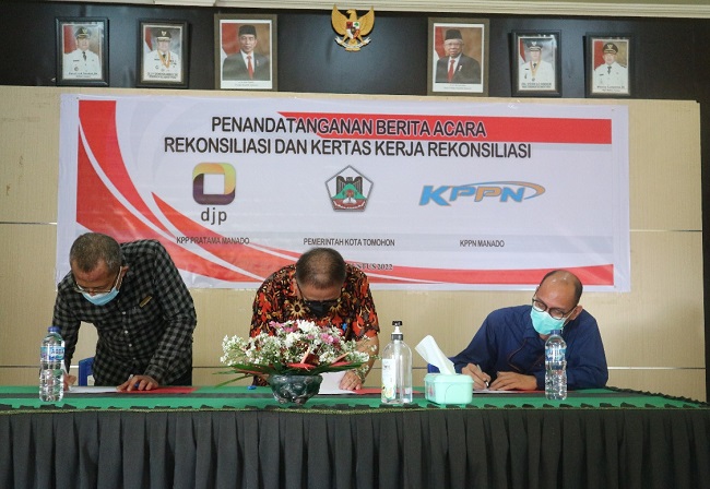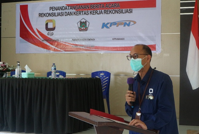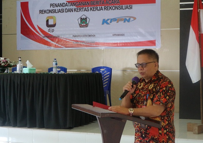 “Pemerintah Kota Tomohon mengucapkan terima kasih atas sinergi yang selama ini sudah terjalin dengan KPP Pratama Manado maupun KP2KP Tomohon, terlebih sepanjang kegiatan rekonsiliasi. Semoga sinergi yang sudah baik dapat terus terlaksana bahkan ditingkatkan,“ tutur Kepala BPKPD Kota Tomohon Bapak Gerardus Mogi dalam sambutannya.