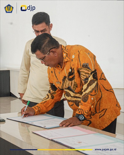 Direktur Jenderal Pajak Suryo Utomo menandatangani PKS Optimalisasi Pemungutan Pajak Pusat dan Pajak Daerah dengan Direktur Jenderal Perimbangan Keuangan Astera Primanto Bhakti dan Bupati Kabupaten Kayong Utara Citra Duani.