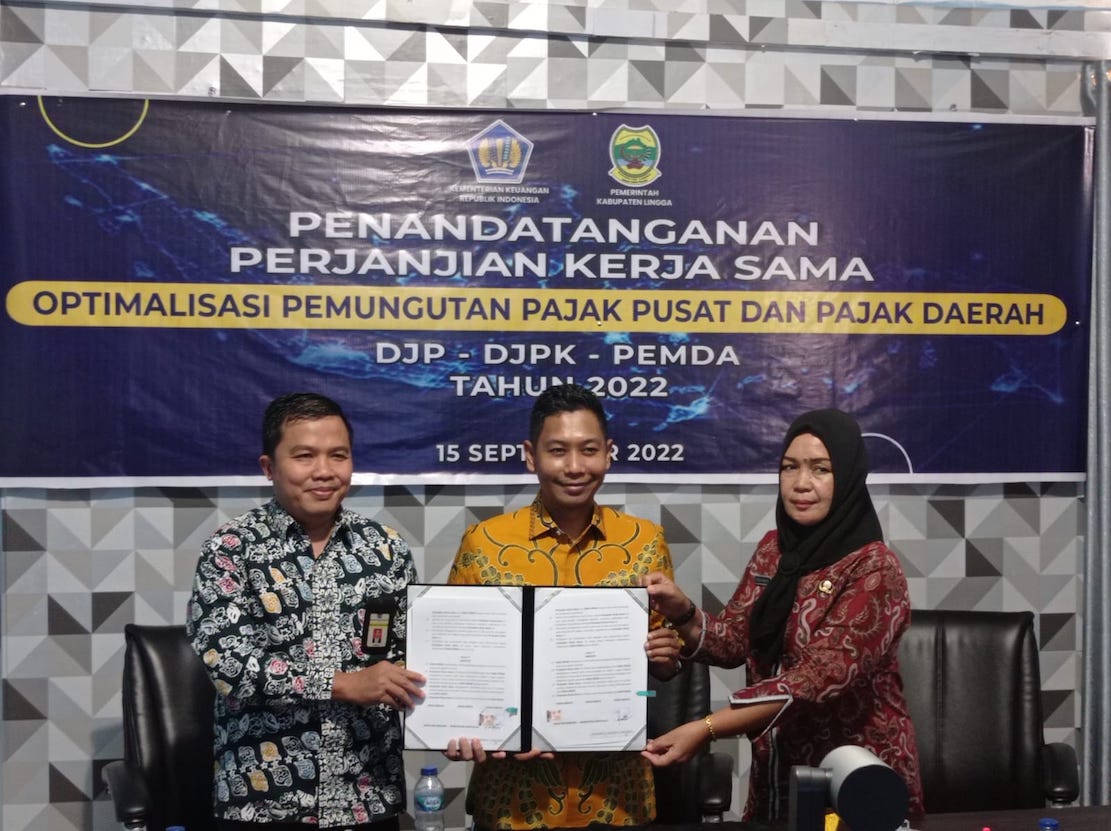 Kepala Kantor Pelayanan dan Penyuluhan dan Konsultasi Perpajakan (KP2KP) Dabo Singkep Wardiman menghadiri seremoni Penandatanganan Perjanjian Kerja Sama (PKS) Optimalisasi Pemungutan Pajak Pusat dan Pajak Daerah antara Direktorat Jenderal Pajak (DJP), Direktorat Jenderal Perimbangan Keuangan (DJPK) dan Pemerintah Daerah (Pemda) Kabupaten Lingga yang dilakukan di kantor Bapenda Lingga, Dabo Singkep, Kepulauan Riau (Kamis, 15/9).