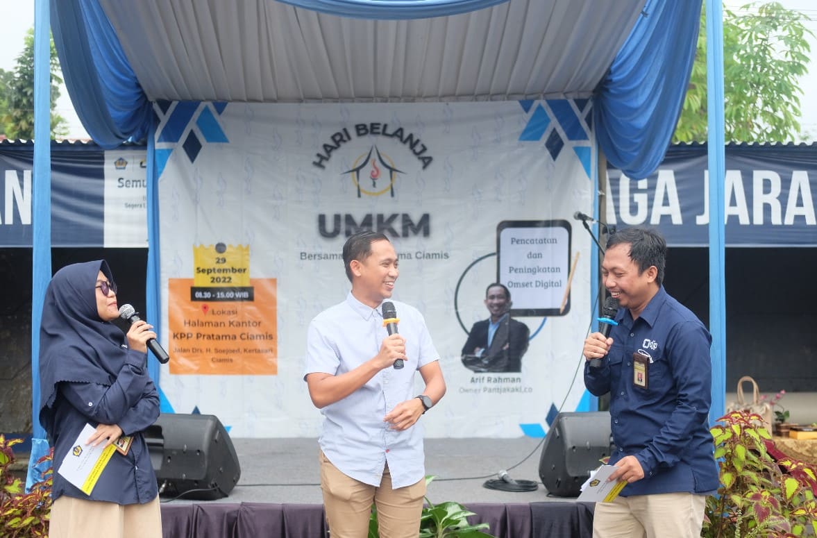 Materi perpajakan serta pencatatan dan peningkatan omset digital disampaikan oleh Account Representative KPP Pratama Ciamis Muhammad Arif Rahman dalam format Talk Show.