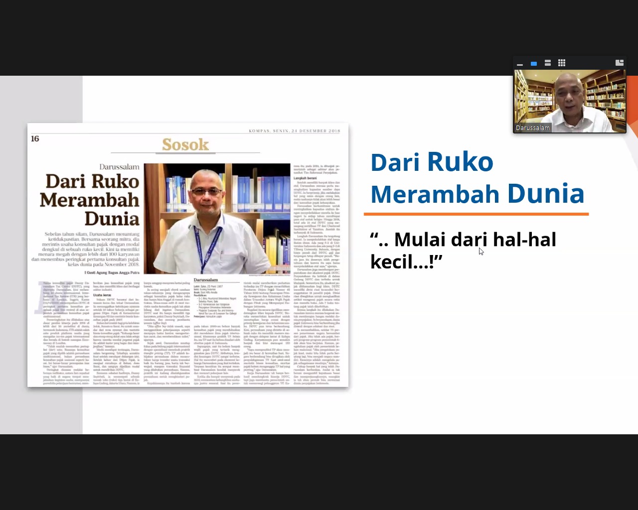 Narasumber bincang santai kali ini adalah Managing Partner DDTC Darussalam. Club Literacy dilaksanakan secara daring melalui aplikasi zoom cloud meeting secara rutin setiap bulan dari jam 15.30 sampai dengan 16.30 WIB.