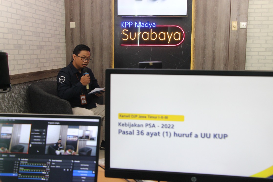 Kantor Pelayanan Pajak (KPP) Madya Surabaya menyelenggarakan Gebyar Pajak dalam rangka menyampaikan Kebijakan Pengurangan Sanksi Administrasi sesuai Pasal 36 ayat (1) huruf a UU KUP di lingkungan Kanwil DJP Jawa Timur I (Selasa, 4/10).