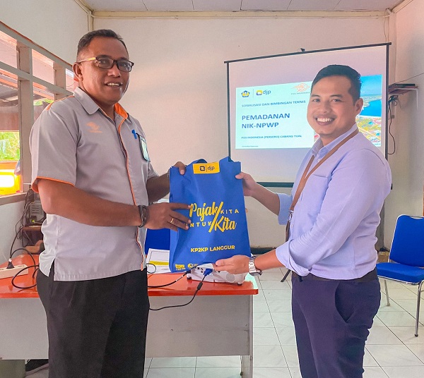 Kantor Pelayanan, Penyuluhan, dan Konsultasi Perpajakan (KP2KP) Langgur melakukan koordinasi penyebarluasan informasi Program Nasional Pemadanan NIK-NPWP dengan Kantor Pos Kota Tual, Maluku (Rabu, 15/1).