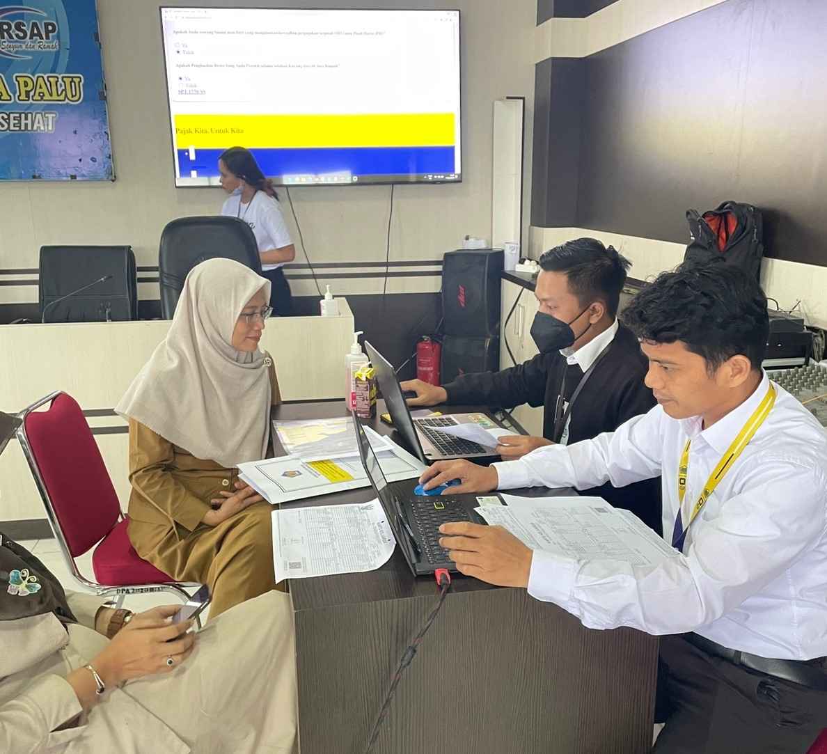 Tim Satuan Tugas (Satgas) dan Relawan Pajak Kantor Pelayanan Pajak (KPP) Pratama Palu mengadakan Pojok Pajak di Rumah Sakit (RS) Anutapura, Donggala Kodi, Ulujadi, Kota Palu, Sulawesi Tengah (Senin, 13/2). Kegiatan ini bertujuan untuk memberikan pelayanan asistensi perpajakan kepada para tenaga kesehatan di tengah kesibukan dalam memberikan pelayanan kesehatan kepada masyarakat. Pojok Pajak berlangsung selama tiga hari, yaitu mulai hari Senin, 13 Februari 2023 hingga Rabu, 15 Februari 2023