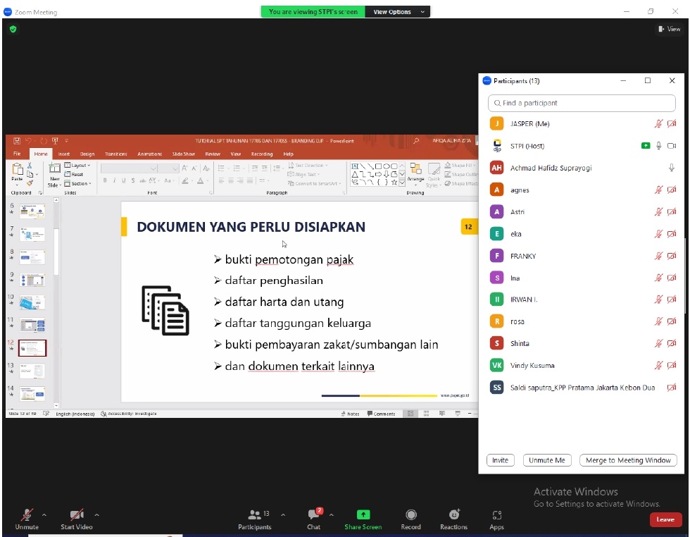 Kantor Pelayanan Pajak (KPP) Pratama Jakarta Kebon Jeruk Dua membuka kelas pajak dengan tema “Pemadanan NIK menjadi NPWP dan Pelaporan SPT Tahunan PPh Orang Pribadi” secara daring melalui Zoom Meeting (Kamis, 28/2).
