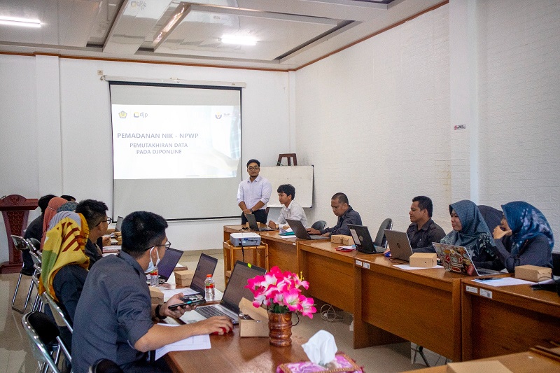 Dalam kesempatan kali ini, Penyuluh KP2KP Puruk Cahu Dicky Prenata Sitepu memaparkan aturan terbaru mengenai pemadanan NIK-NPWP dan pengisian SPT Tahunan secara bersama-sama kepada pegawai BPS. “Mulai 01 Januari 2024 seluruh layanan perpajakan dan lainnya sudah menggunakan NPWP dengan format baru, sehingga silakan bagi para wajib pajak untuk segera melakukan pemutakhiran profil perpajakannya dengan data dukung Kartu Tanda Penduduk (KTP) dan Kartu Keluarga (KK) serta dapat menyebarluaskan informasi ini kepada wajib pajak yang lain,” ujar Dicky.