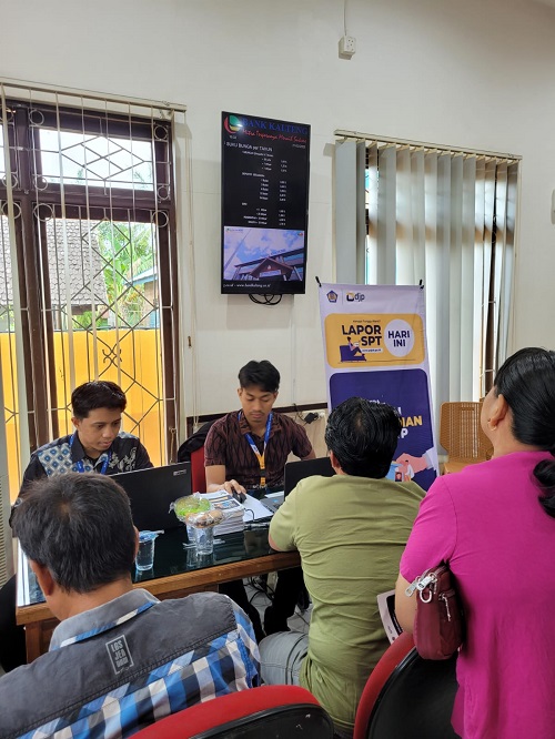 Kantor Pelayanan Pajak (KPP) Pratama Sampit bersama Kantor Pelayanan, Penyuluhan, dan Konsultasi Perpajakan (KP2KP) Kasongan kembali mengadakan layanan pojok pajak selama dua hari yang berlokasi di Bank Kalteng Cabang Pembantu Tumbang Samba, Kabupaten Katingan (Rabu, 22/2). Kegiatan ini dilaksanakan untuk memudahkan masyarakat dalam memperoleh layanan perpajakan.