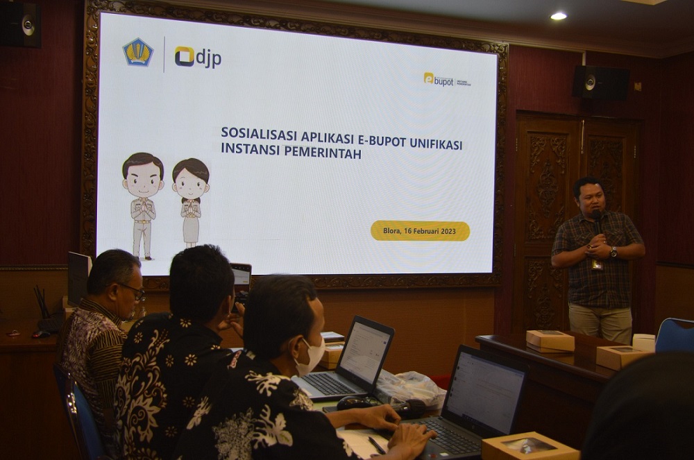 Kantor Pelayanan Pajak (KPP) Pratama Blora melaksanakan Bimbingan Teknis terkait Pembuatan e-Bupot Unifikasi Instansi Pemerintah kepada lima belas bendahara di lingkungan Sekretariat Daerah Kabupaten Blora. Kegiatan ini dilaksanakan di Aula Sekretariat Daerah Kabupaten Blora, Jl. Pemuda No.12, Mlangsen, Kecamatan Blora, Kabupaten Blora (Kamis, 16/2).