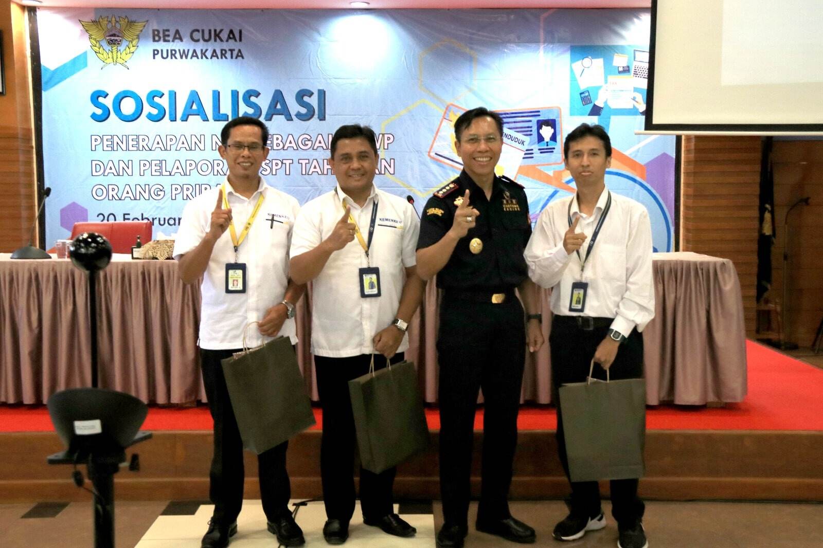 Sebanyak 30 pegawai Kantor Pengawasan dan Pelayanan Bea dan Cukai (KPPBC) Purwakarta mengikuti sosialisasi pemadanan Nomor Induk Kependudukan (NIK) menjadi Nomor Pokok Wajib Pajak (NPWP) dan Pelaporan SPT Tahunan yang diadakan oleh Kantor Pelayanan pajak (KPP) Pratama Purwakarta, di Kantor Pengawasan dan Pelayanan Bea dan Cukai (KPPBC) Purwakarta, Purwakarta (Senin, 20/2).