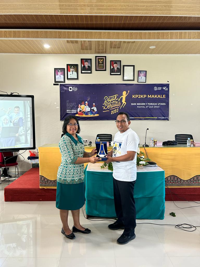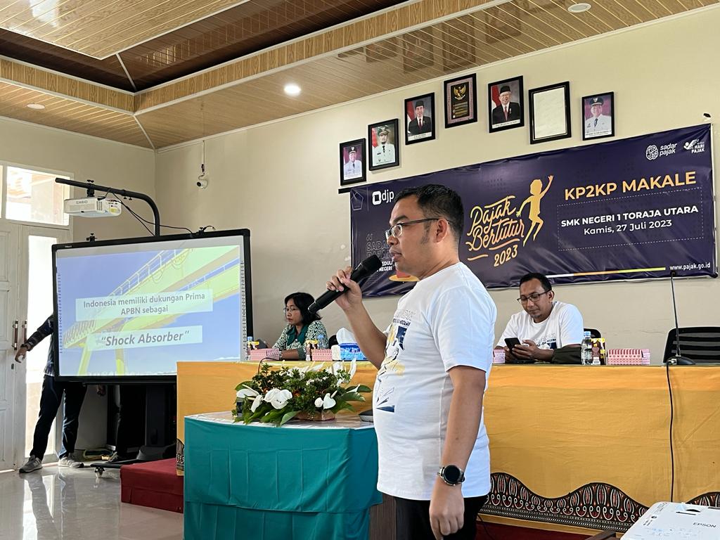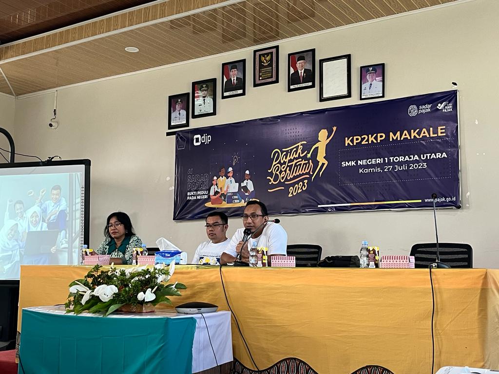 Kantor Pelayanan, Penyuluhan, dan Konsultasi Perpajakan Makale kembali menyemarakkan Pajak Bertutur 2023 di Aula SMK Negeri 1 Toraja Utara (Kamis, 27/7).