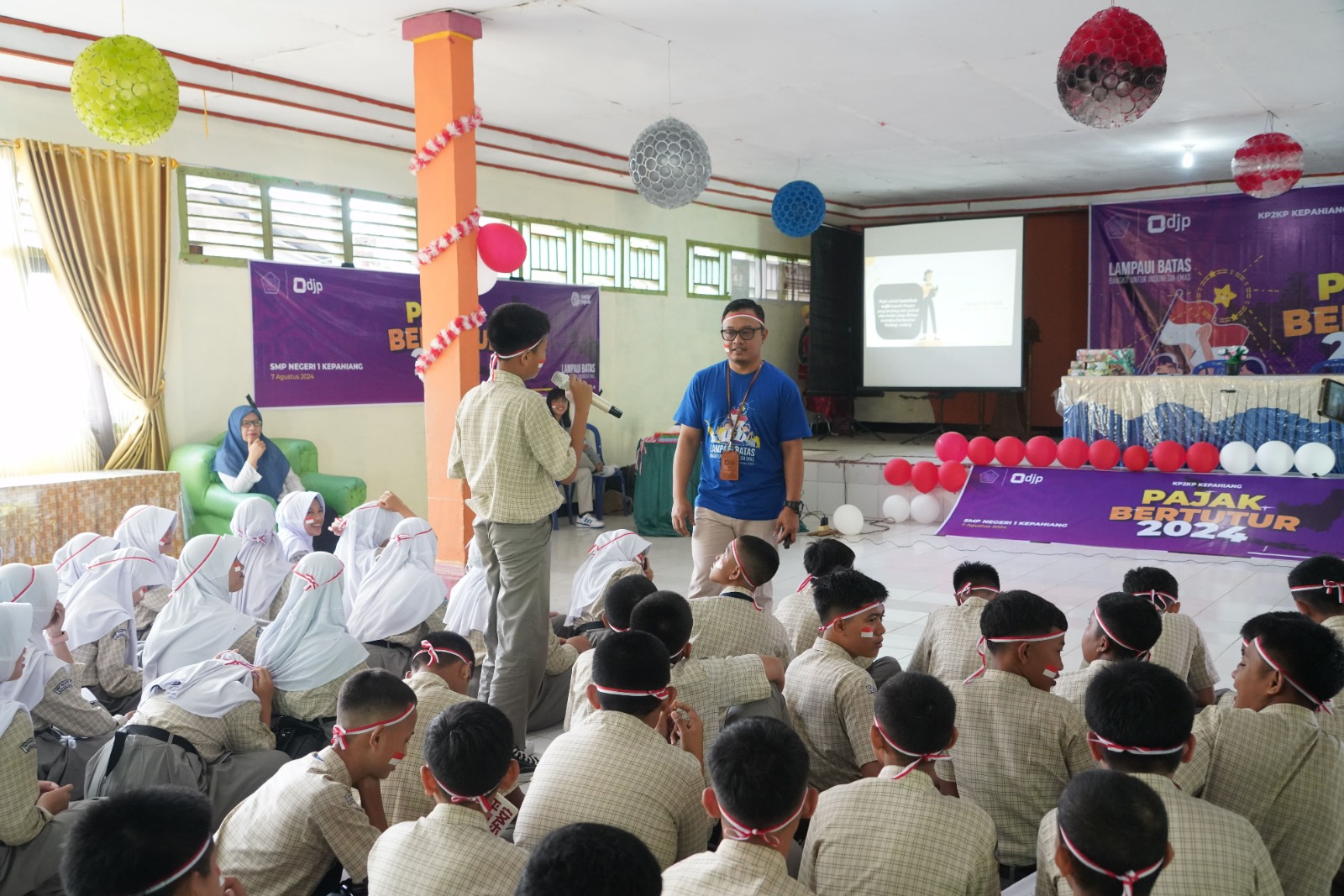 Kantor Pelayanan, Penyuluhan, dan Konsultasi Perpajakan (KP2KP) Kepahiang telah melaksanakan Pajak Bertutur 2024 di Sekolah Menengah Pertama (SMP) Negeri 1 Kepahiang yang berlokasi di Jl. Kihajar Dewantara No. 1 Pensiunan, Kecamatan Kepahiang, Kabupaten Kepahiang, Provinsi Bengkulu (Rabu, 7/8). Bertempat di aula SMP Negeri 1 Kepahiang, acara dimulai pukul 08.00 WIB dihadiri oleh pejabat sekolah, guru dan 100 siswa/i SMP Negeri 1 Kepahiang.