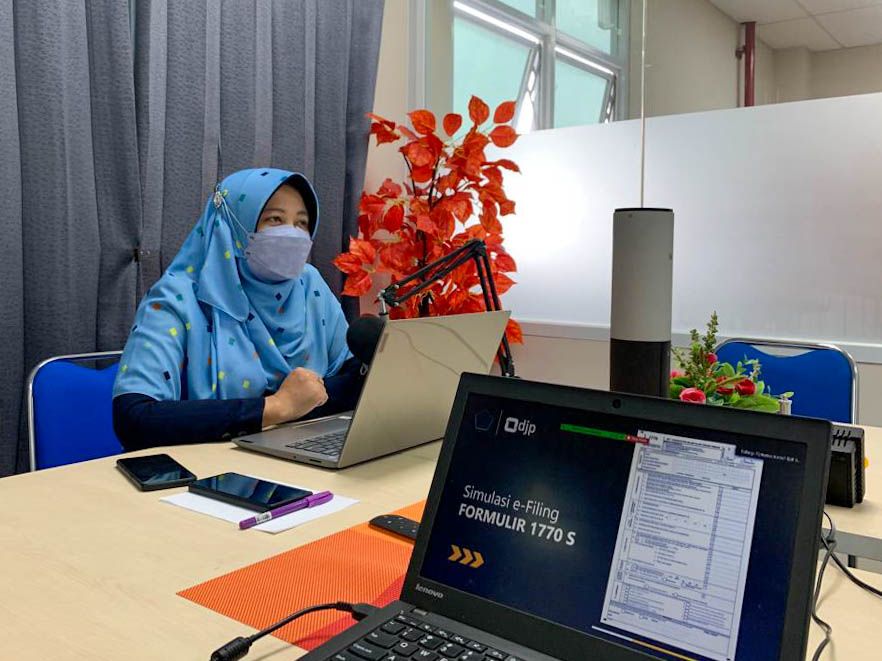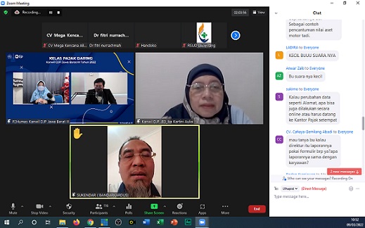 Pemaparan materi dan simulasi pengisian SPT Tahunan 1770 S dan SPT Tahunan 1770 SS melalui e-Filing disampaikan oleh Penyuluh Pajak Kanwil DJP Jawa Barat III Ika Kartini Aulia dan Lala Krisnalia. Dalam sesi tanya jawab, para peserta secara aktif mengajukan pertanyaan baik kolom chat maupun secara langsung mengaktifkan kamera.