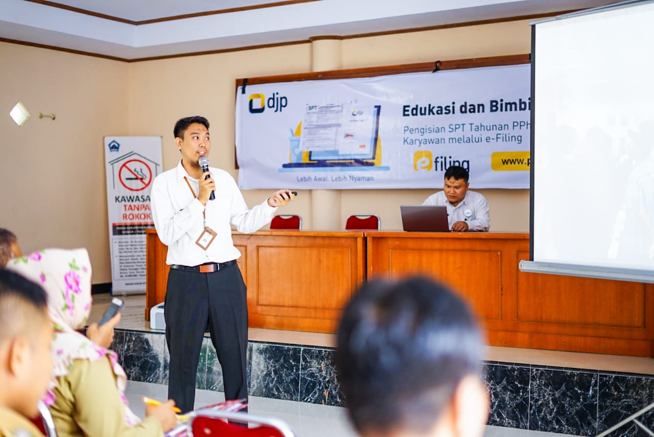 Pada kesempatan ini, Abd Gaffar selaku Account Representative seksi Pengawasan dan Konsultasi IV KPP Pratama Bantaeng bertindak sebagai pemateri. Ia membahas mengenai tata cara pengisian SPT Tahunan bagi karyawan setingkat ASN secara daring dengan menggunakan e-Filing. Tampak antusiasme yang ditunjukkan para ASN dalam menyimak materi yang disampaikan.